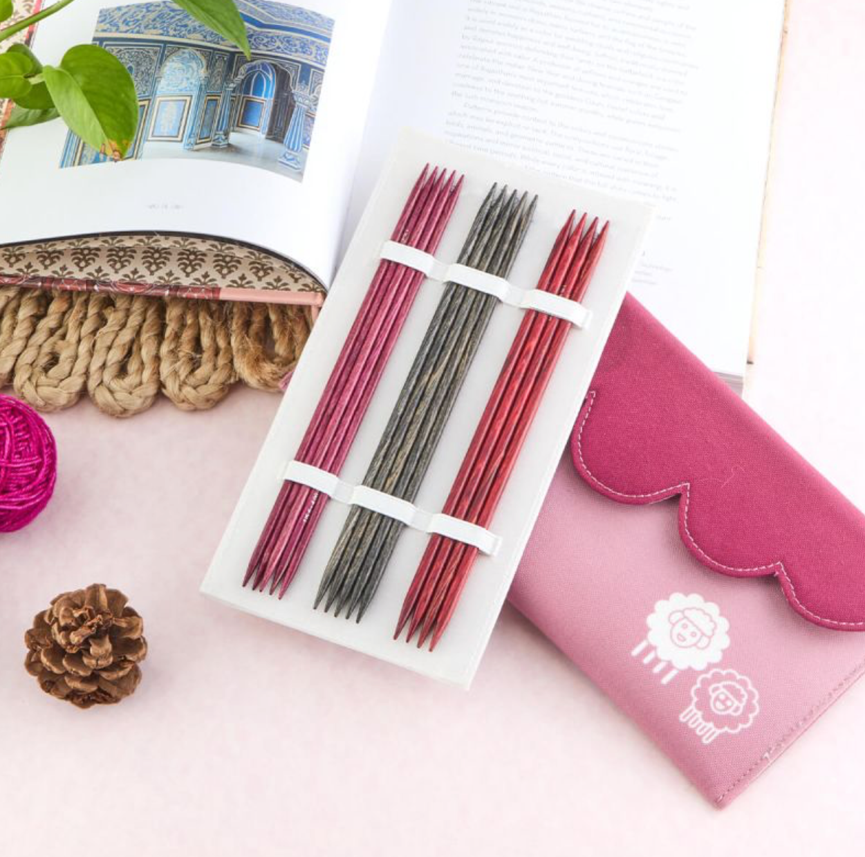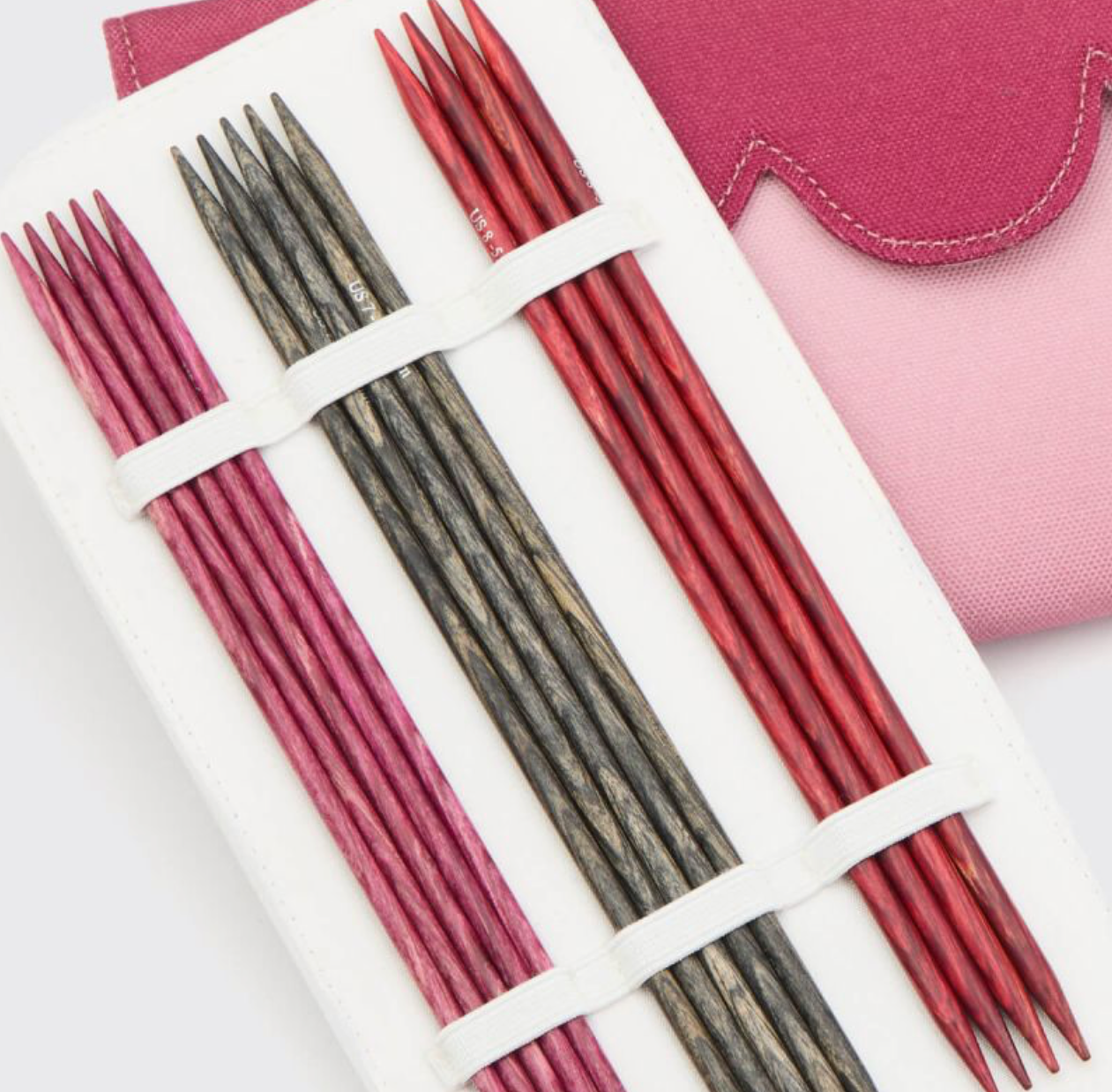 Pakkaus sisältää koot: 2.50, 3.00, 3.50, 4.00, 4.50, 5.00 mm (viisi puikkoa kutakin kokoa)
