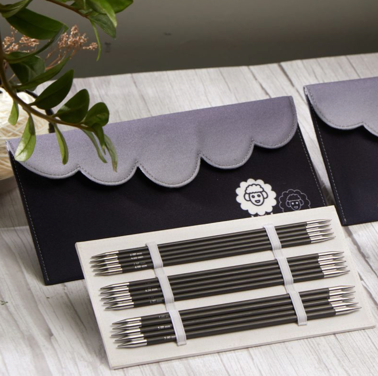 Pakkaus sisältää koot: 2.50, 3.00, 3.50, 4.00, 4.50, 5.00 mm (viisi puikkoa kutakin kokoa)