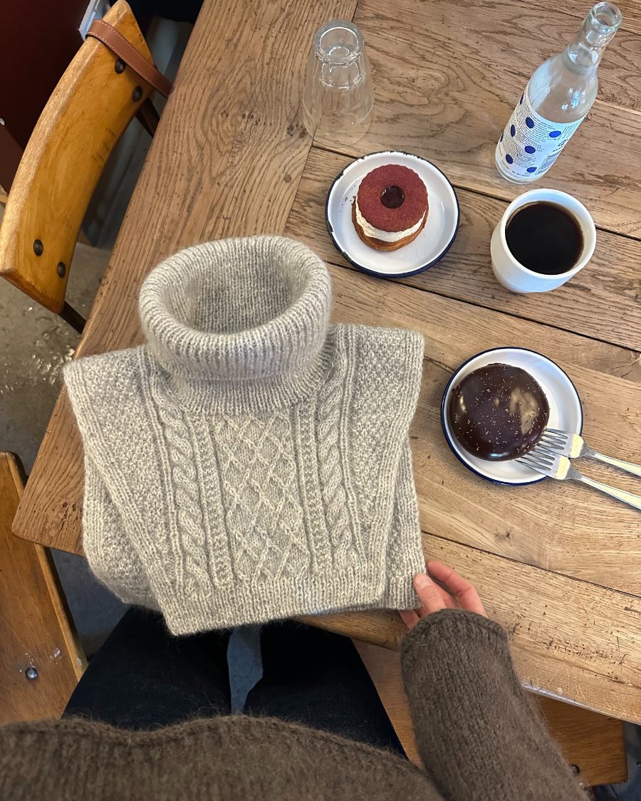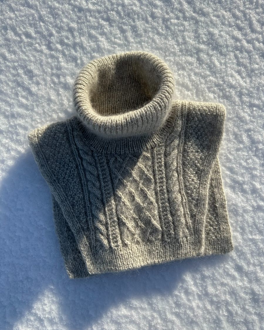 Moby Neck neulotaan takakappaleen alareunasta alkaen kohti etupuolen etureunaa pinta- ja palmikkoneuleena. Pääntielle neulotaan poolokaulus poimituista silmukoista. Kaulurin takakappale on suorakulmainen ja etupuoli puolisuunnikkaan muotoinen. Silmukat luodaan ja päätellään italialaisittain. Neulo mallitilkku ennen aloittamista, jotta osaat valita oikean kokoiset puikot. Kastele ja pingota tilkku ennen mittaamista.
