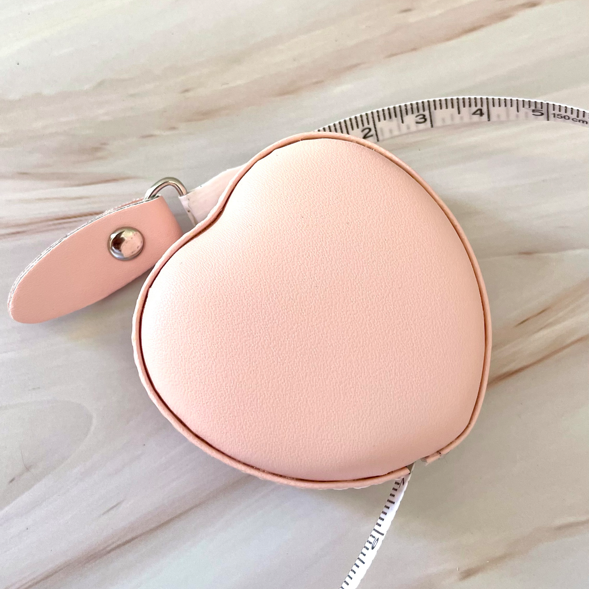 Kätevän kokoinen rullamitta on jokaisen neulojan pakollinen apuväline! Kaunis, pehmeä, sydämenmuotoinen mitta on myös ilo silmälle. Mitan pituus on 150 cm ja kääntöpuolella on myös tuumamitat. Nauha kelautuu nappia painamalla sisään. Materiaali keinonahkaa.