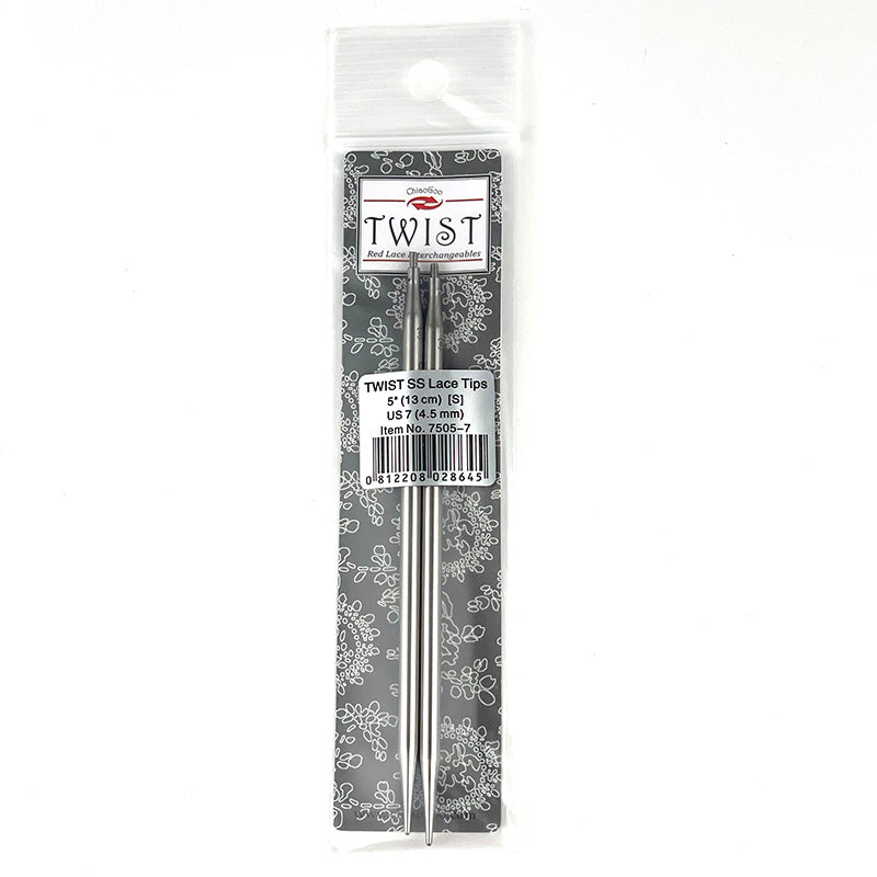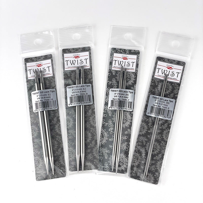 ChiaoGoo Twist Lace - pyöröpuikkojen vaihtopäät on valmistettu korkealuokkaisesta kirurginteräksestä. Materiaali on hypoallergeeninen, nikkelitön ja korroosionkestävä, joten se on turvallinen ja kestävä käytössä. Tarkka kierreliitos takaa langan sujuvan liukumisen puikolta kaapelille. Laserkaiverretusta kokomerkinnästä voi tarkistaa helposti puikkojen koon.